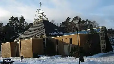Justvik Church (Norwegian: Justvik kirke) is a parish church of the Church of Norway in Kristiansand Municipality in Agder county, Norway. It is located in the village of Justvik, just north of the centre of the city of Kristiansand. It is one of the churches for the Oddernes parish which is part of the Kristiansand domprosti (arch-deanery) in the Diocese of Agder og Telemark. The tan brick church was built in a rectangular design in 1996 using plans drawn up by the architect Ernst Aukland. The church seats about 275 people.[1][2] The church was consecrated on 29 December 1996 by the Bishop.[3]