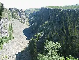 Jutulhogget is a 2.4-kilometre (1.5 mi) long dry canyon in the municipalities of Alvdal and Rendalen in Innlandet county, Norway. The canyon was created by the rupture of the dam of a proglacial lake and the force of the rushing water leaving the lake carved out the canyon. The canyon was protected as a nature reserve in 1959. The steep walls of the canyon range from 100 to 240 metres (330 to 790 ft) in height.[1]
