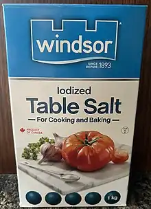 Windsor Salt is a national salt mining, processing, and distribution company based in Pointe-Claire, Quebec, Canada.[1] It operates salt mines in Pugwash, Nova Scotia (the Windsor Salt Pugwash Mine) and Windsor, Ontario (the Windsor Salt Mine).[2] From the salt it mines and produces through evaporative processes, it produces and distributes products for household use, food production, as well as products for agricultural, commercial, and industrial use. Government agencies use a number of its products for ice control on roads in the winter.
