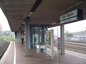 Köln-Nippes is a passenger and freight railway station situated in Nippes, the northern border of the city of Cologne in western Germany. It is served by the S6 and S11 lines of the Rhine-Ruhr S-Bahn.[5][6]