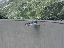 The Kölnbrein Dam is an arch dam in the Hohe Tauern range within Carinthia, Austria. It was constructed between 1971 and 1979 and at 200 metres (660 ft) high, it is the tallest dam in Austria.[1] The dam's reservoir serves as the primary storage in a three-stage pumped-storage power system that consists of nine dams, four hydroelectric power plants and a series of pipeline and penstocks. The complex is owned by Verbund power company and is referred to as the Malta-Reisseck Power Plant Group. The installed capacity of the group is 1,028.5 MW and its annual generation is 1,216 gigawatt-hours (4,380 TJ).