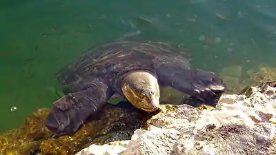 The only spa resort, at Sultaniye, was restored in the 90’s and has been a popular tourist attraction ever since. The water temperature amounts to 40 °C. Apart from the thermal spring, it also has a mud bath. There is another mud bath somewhat downriver at a former river branch. This is a location where the Nile turtle (Trionyx triunguis) can be spotted. It is a turtle with a soft shell, thence also called African softshell turtle, which is about 1 metre in size. It is a protected, thermophile species. Consequently, it is often seen near the thermal springs along the fault line. The species occurs near to the sea, in lagoons, lakes, rivers and canals, both in fresh and brackish waters. The Nile turtle is mainly aquatic and will only leave the water for short periods to rest in the sun. In the Köyceğiz-Dalyan SEPA, oviposition takes place at the brackish waterside of İztuzu Beach. The Dalyan-Köyceğiz basin is in the utmost northwest of the species’ range.