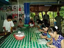 Kẹo dừa is a Vietnamese coconut candy most commonly produced in Bến Tre province, Vietnam, with coconut milk and coconut cream. The Ben Tre Province is nicknamed by the Vietnamese as the "Land of Coconut" (Xu Dua). The Vietnamese term for coconut candy is "kẹo dừa", with kẹo = candy and dừa = coconut. Coconut candy was originally associated with Mo Cay, a township within the Bến Tre province.[1]