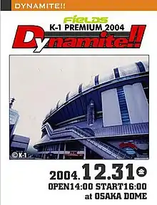 K-1 PREMIUM 2004 Dynamite!! was an annual kickboxing and mixed martial arts event held by K-1 on New Year's Eve, Friday, December 31, 2004 at the Osaka Dome in Osaka, Japan. It featured 7 K-1 MMA rules fights, 3 K-1 rules fights, and a special mixed K-1 & MMA Rules fight.[1]