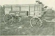 The K-2 Lance wagon is a light wagon approximately 14 ft long, equipped with a high box body running its entire length, the body surmounted in front by a driver's seat; tool and supply containers are attached to either side of the box; proper re-enforcements are provided and suitable brakes are attached; rear wheel diameter 4 ft 8 in; gauge 4 ft 10 in; height of box body 3 ft 9 in; width of box body 3 ft 4 in.[1][2][3]