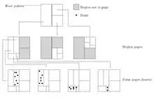 - Region pages: A collection of (region, child) pairs containing a description of the bounding region along with a pointer to the child page corresponding to that region.