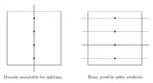 It is important to take care in the domain and element chosen to split page by, since it is desirable to try to balance the number of points on either side of the splitting plane. In some cases, a poor choice of splitting domain can result in undesirable splits. It is also possible that a page cannot be split by a certain domain.