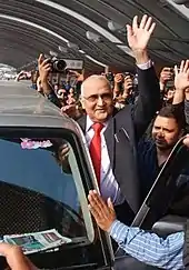 He was elected from Jhapa–7 in the 2013 Constituent Assembly election and became leader of the CPN (UML) parliamentary party on 4 February 2014, defeating party chairman Khanal by a vote of 98 to 75 in the parliamentary party.[32] Oli was subsequently elected as the chairman of CPN (UML) in July 2014 during the party's ninth general convention.[33][34]