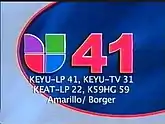 KEYU (channel 31) is a television station licensed to Borger, Texas, United States, serving the Amarillo area as an affiliate of the Spanish-language Telemundo network. It is owned by Gray Television alongside CBS affiliate KFDA-TV (channel 10). The two stations share studios on Broadway Drive (just south of West Cherry Avenue) in northern Amarillo; KEYU's transmitter is located on Dumas Drive (US 87-287) and Reclamation Plant Road in rural unincorporated Potter County.