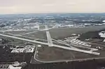 The airport covers 1900 acres (769 ha) at an elevation of 11 feet (3 m). It has two asphalt runways: 18/36 is 9,730 by 150 feet (2,966 x 46 m) with an ILS approach, and 04/22 is 6,000 by 150 feet (1,829 x 46 m).[1][42]