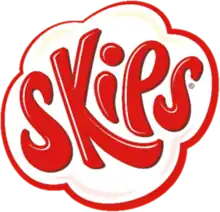Skips are similar to Chinese prawn crackers, although they are smaller and have a finer texture that makes them fizz and melt on the tongue.[1][2] The snacks are made by KP Snacks under license of the German snack food company Intersnack.[3] In the United Kingdom, they are made with tapioca starch and in Ireland with maize starch. Packets of Skips often have jokes or tongue twisters written on the back, which are aimed at children. Other flavours, such as pickled onion, Caribbean Spice curry (teal blue bag), Hot from Rio chilli (orange bag), Chinese spare rib (purple bag), a limited edition ReBoot Dots Doughnut (pink bag) and a ReBoot pizza flavour, Sweetcorn Relish (1985,[4] yellow bag[5] and Sweet'n'Sour [6] have been available in the past. In 2002, KP launched 2 new variations of Skips intended to offer a 'unique taste sensation'. Buzz Boltz featured a 'crunch-melt' experience and Tickle Pickle delivered a 'puff-melt' sensation.[7] Both have since been discontinued.