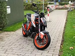 The KTM 1290 Super Duke R is a 1301 cc 75° V-twin engine, naked motorcycle from the Austrian manufacturer KTM. With the update in 2017 the motor is the most powerful LC8 engine ever built by KTM.[3][4]