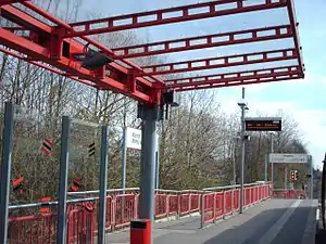 Kaarst Mitte/Holzbüttgen is a Rhine-Ruhr S-Bahn station in the town of Kaarst in the German state of North Rhine-Westphalia. It was opened as Kaarst Erftstr between 1985 and 1987 on the remaining part of the Neuss–Viersen railway, which was opened by the Rhenish Railway Company on 15 November 1877.[5] It was given its current name on 26 September 1999.[4]