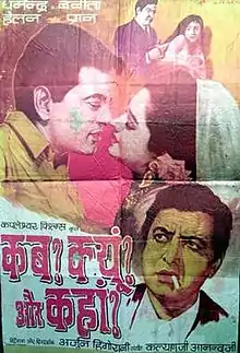 Kab? Kyoon? Aur Kahan? (lit. 'When? Why? And Where?') is a 1970 Bollywood mystery film directed by Arjun Hingorani. The film stars Dharmendra, Babita and Pran.[1] It is inspired by the French classic film Les Diaboliques (film) (1955), including the bathtub scene.