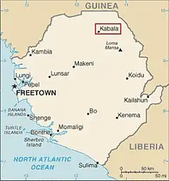 Kabala (Pular : 𞤑𞤢𞤦𞤢𞤤𞤢) is the capital and largest town of Koinadugu District in the Northern Province of Sierra Leone. Kabala is one of the main towns in Northern Sierra Leone and is set in a rural landscape, surrounded by mountains.[1][2]