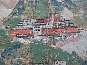 After the death of Atiśa in 1054, his main disciple Dromtön was the main leader of the Kadam tradition. He founded Radreng Monastery in 1056.[9] Another important student was Ngog Legpai Sherab, he founded Sangpu Neutog in 1071. According to Sam Van Schaik, "both monasteries followed Atiśa's principle of combining tantric meditation practice with a firm adherence to the monastic code and with rigorous scholarship."[9] Reting Monastery was located in Reting Tsangpo valley north of Lhasa. The nearby Phenpo Chu and Gyama Valleys were also home to many large Kadampa monasteries.[10]