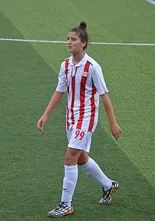 She was transferred by the 2018–19 Women's First League champion Beşiktaş J.K. to play in the 2019–20 UEFA Women's Champions League – Group 9 matches.[9] She scored the only goal of her team in the first game against the Polish Górnik Łęczna.[10] She netted also one goal against the Armenian Alashkert.[11]