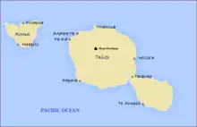 Before the arrival of the Europeans, the island was divided into territories, each dominated by a single clan. The most important clans were the closely related Teva i Uta (Teva of the Interior) and the Teva i Tai (Teva of the Sea)[16] whose combined territory extended from the peninsula in the south of Tahiti Nui.[17]