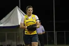 Kaia Parnaby (born July 14, 1990) is an Australian, former collegiate All-American, 2020 Olympian, left-handed professional softball pitcher, originally from Sydney, New South Wales.[1] She is a pitcher and earned a scholarship to and played for the Australian Institute of Sport. She played university softball for the Hawaii Rainbow Wahine team in the Big West Conference where she was recognized as all-conference and the 2013 Pitcher of The Year.[2][3] She also helped them to their first-ever appearance at the 2010 Women's College World Series.[4] She also played for the Aussie Peppers, a traveling team affiliate in the National Pro Fastpitch. She is a member of the senior Australia women's national softball team and played in the 2020 Summer Olympics.[5][6]