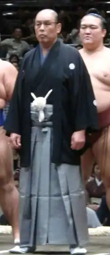 ![]() Kaiketsu as chairman on the opening day of September 2011 tournament. | |