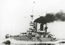 Secondary armament included eighteen 15 cm (5.9 inch) SK L/40 guns. Six were mounted in single turrets amidships and the rest were mounted in MPL casemates; all were manually operated and elevated.[lower-alpha 2] Most of these guns were mounted at upper-deck level, with only four of the casemates at main deck level, which kept them high enough in the ship to avoid a common problem with battleships of the period where heavy seas could make the guns unworkable. According to the historian Aidan Dodson, the arrangement was "perhaps the best of the period."[12] These guns fired armor-piercing shells at a rate of 4 to 5 per minute. The ships carried 120 shells per gun, for a total of 2,160 rounds total. The guns could depress to −7 degrees and elevate to +20 degrees, for a maximum range of 13,700 m (14,990 yd). The shells weighed 51 kg (112 lb) and were fired at a muzzle velocity of 735 m/s (2,410 ft/s).[11][13]