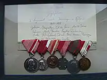 - the Wound Medal for being wounded once (on 20 September 1918 at Zigolon – Adamello-Presanella)