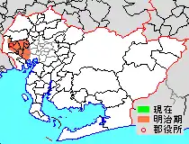 Map showing original extent of Kaisei District in Aichi Prefecture: