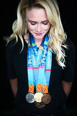Kaitlin Shea Sandeno (born March 13, 1983) is an American former competition swimmer who is an Olympic gold medalist, world champion and former world record-holder. Sandeno was a member of the American team that set a new world record in the 4×200-meter freestyle relay at the 2004 Summer Olympics.[5] She is the current general manager of DC Trident which is a part of the International Swimming League.