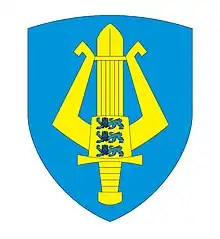 The Kaitseväe orkester, known in Anglophone countries as the Band of the Estonian Defence Forces, is the official military band service of the Estonian Defence Forces. The main task of the band is to play music at all national and military ceremonies. The band's repertoire includes mostly classical and marching music. It is currently made up of 40 musicians. From 1996 to 2019, the conductor of the band was Lieutenant Colonel Peeter Saan.[2] Each year, the band takes part in about 220 concerts, festivals, and ceremonial parades of the Defence Forces (such as the annual independence day parade in Tallinn). It has also performed at venues abroad in countries like Lithuania,[3] France and Germany. Traditionally, the band holds Autumn and Spring concerts in the Estonia Concert Hall.[4][5]