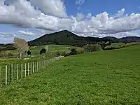 Pukekaroro is a distinctive 1.5 km diameter, forest-covered Volcanic dome of dacite dated at 17 million years old rising to 301m 3.5 km north of Kaiwaka on State Highway 1.[28]