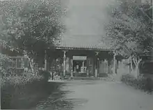The inner shanmen serves as the main entrance to the temple complex itself. The gate was repaired in 1912 by De Yuan (得圓) and 1953 by Yin Ming (印明). It is five kaijian wide (six columns) and has three doors. There are menshen painted on each door by Cai Caoru and couplets on each doorframe by Lin Chaoyin. On the middle door, Sangharama and Skanda are painted as menshen instead of Qin Shubao and Yuchi Gong typically found in other temples.[2]