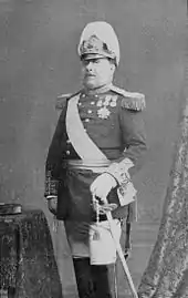No other sovereign ruler had ever accomplished the feat of circling the globe, but Kalākaua, the last king of the Hawaiian Islands, had previously set other records.[1] He was the first reigning monarch to visit the United States during his 1874 visit to Washington, D.C. for negotiations on the Reciprocity Treaty of 1875. The state dinner in his honor hosted by President Ulysses S. Grant was the first White House state dinner ever given.[2][3] According to the personal writings of Queen Dowager Emma, a political opponent of his,[FN 1] Kalākaua supposedly had the intention in 1874 of making a world tour "for his personal gratification and vanity".[6]