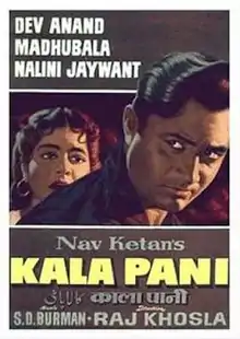 Kala Pani (lit. 'Black Water'; transl. Solitary confinement) is a 1958 Indian Hindi-language thriller film, produced by Dev Anand for Navketan Films and directed by Raj Khosla. It is a remake of the 1955 Bengali film Sabar Uparey which itself was based on A.J. Cronin's 1953 novel Beyond This Place.[1] The film's music is by S. D. Burman, and the lyrics are by Majrooh Sultanpuri.[2]
