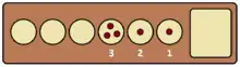 As mentioned above, if the last seed sown by a player lands in that player's store, the player gets an extra move. A clever player can take advantage of this rule to chain together many extra turns. Certain configurations of a row of the board can in this way be cleared in a single turn, that is, the player can capture all stones on their row, as depicted on the right. The longest possible such chain on a standard Kalah board of 6 pits lasts for 17 moves. On a general n-pit board, the patterns of seeds which can be cleared in a single turn in this way have been the object of mathematical study.[4] One can prove that, for all n, there exists one and only one pattern clearable in exactly n moves, or equivalently, one and only one clearable pattern consisting of exactly n seeds.