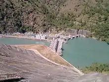Kaligandaki A Hydroelectric Power Station is situated near Mirmi of Syangja District about 300 km to the west of Kathmandu and 100 km from Pokhara in the same direction in Nepal. The hydropower project is also the biggest hydropower project of Nepal. The dam and headworks are situated on the Gandaki River at the confluence of the Andhikhola whereas the power house is located downstream, around a bend in the river, in Beltari (About 7 km towards the South-East of Mirmi).[1][2] A 5.9 km (3.7 mi) long headrace tunnel connects the reservoir to the power station which contains three 48 MW Francis turbine-generators. Owner and operator of the power plant is Nepal Electricity Authority.