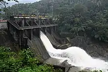 Kallarkutty Dam is a dam built on the Muthirapuzha river, a tributary of the Periyar River, as part of the Neryamangalam Hydroelectric Project[1] at Kallarkutty in Vellathooval Panchayath, Idukki District, Kerala. The water discharged from the Chenkulam Dam's powerhouse and the Muthirapuzha river is diverted to the Neryamangalam Powerhouse near Panamkutty above the Lower Periyar Dam. The Hydroelectric Project was commissioned on 27 January 1961 to generate 45 MW of power using 3 turbines with a capacity of 15 MW. In 2006, the project was upgraded from 45 MW to 52.65 MW.[2] Taluks through which release flow are Udumpanchola, Devikulam, Idukki, Kothamangalam, Muvattupuzha, Kunnathunadu, Aluva, Kodungalloor and Paravur.