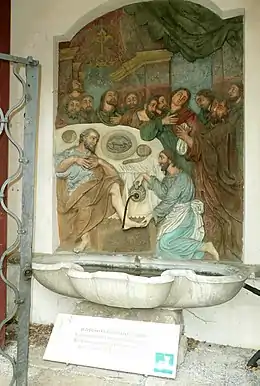 Around 1740, medieval city Schemnitz, Kingdom of Hungary (now Banská Štiavnica, Slovakia) intended to form a standard Calvary with fourteen stations in the eastern part of the city – under a hill named Ostrý vrch (Scharffenberg – this hill along with the surrounding land belonged to the family of Fritz von Friedenlieb, of Protestant religion). However, only two chapels still remain standing. The Jesuit Father Francis Perger proposed to the City Hall a project of magnificent Calvary comprising three churches and 22 chapels, probably based on the architectural design of major historian, cartographer and architect Samuel Mikoviny. The owners of the land in the year 1744 released the top of the hill with its western slope to the city in order to allow implementation of the Calvary complex as proposed by the Father Perger. After considering, the magistrate finally on 13 March 1744 agreed to, and provided the initial funding by the sum of 300 Goldens. Municipality Banská Štiavnica presented on 22 May 1744 a demand to ecclesiastical authority for approval to build Calvary according to this project under the auspices of the city of Banská Štiavnica. Archbishop of Esztergom (resident in Trnava) Imrich Esterházy (1725–1745) adopted the request and his approval reached the municipality on 13 August 1744.[1] Immediately preparation work was begun – treatments of the ground and import of materials on the site. The cornerstone was solemnly blessed by the presence of large numbers of believers and the priesthood on the Feast of Exaltation of the holy Cross – on 14 September in 1744. The first building was the "Upper Church".