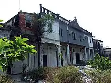 The Cheng Hon Pang Ancestral Hall (翰鵬鄭家祠) was built in 1929. It was later converted into a Catholic church called Our Lady of Sorrows Chapel (聖母七苦小堂), which was served from S.S. Peter and Paul Church (聖伯多祿聖保祿堂) in Yuen Long District (built in 1925 in Tung Tau Tsuen, S.S. Peter and Paul Church was relocated and rebuilt at No. 201 Castle Peak Road, near Shui Pin Tsuen, in 1958).[4] The Chengs later redeemed the ancestral hall from the Catholic Church in the mid-1960s and the church at the hall was closed.[1]