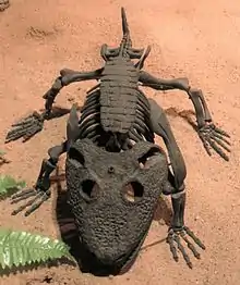 Kamacops is a genus of dissorophid temnospondyls known from the Middle to Late Permian of Russia that was described by Yuri Gubin in 1980.[1] It is known from a single species, Kamacops acervalis, material of which is currently reposited in the Paleontological Institute of the Russian Academy of Sciences. Kamacops is one of the youngest dissorophids, along with Iratusaurus and Zygosaurus from Russia and Anakamacops from China and was one of the largest known dissorophids, with an estimated skull length of 24–30 cm.[1][2] It is typically recovered as being most closely related to Zygosaurus and to the North American Cacops[3]. A detailed study of the braincase region was performed by Schoch (1999),[2] one of the first to examine this region in dissorophids. This study revealed extensive co-ossification of the braincase.