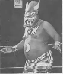 James Arthur Harris (May 28, 1950 – August 9, 2020),[4] better known by his ring name Kamala, was an American professional wrestler. Nicknamed "The Ugandan Giant", Kamala portrayed a fearsome and simpleminded Ugandan. He wrestled barefoot, clad only in a loincloth, his face painted with war paint and two stars and a moon painted on his torso. During his ring entrance, he sported an African mask and wielded a spear and shield. He is best known for his appearances with the World Wrestling Federation (now WWE) over the course of numerous runs in the company between 1984 and 1993.[1][5][12]
