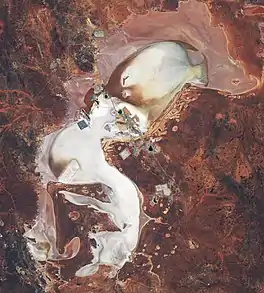 ![]() Satellite image of Lake Lefroy, with the Kambalda Nickel Operations on the north-western shore | |