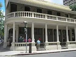 Kamehameha V Post Office at the corner of Merchant and Bethel Streets in Honolulu, Hawaii was the first building in the Hawaiian Islands to be constructed entirely of precast concrete blocks reinforced with iron bars. It was built by J.G. Osborne in 1871 and the success of this new method was replicated on a much grander scale the next year in the royal palace, Aliʻiōlani Hale. The building was added to the National Register of Historic Places on 5 May 1972 and was designated as a National Historic Civil Engineering Landmark in 1987. It was named for King Kamehameha V, who built a number of public buildings during his reign.[2][3]