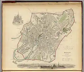Kamer-Kollezhsky rampart[1] (Russian: Камер-Коллежский вал, Kamer-Kollezhsky val, also translated as Kamer-Collegium barriers[2] or Chamber-Collegium wall[3]) was a rampart which was built by Kamer Collegium (Collegium of State Income of the Russian Empire) and became the last of the Moscow city walls. After demolishing of the ramparts and gates it became a ring of streets around the center of Moscow, Russia. It is the third historical ring of Moscow (after Boulevard Ring and Garden Ring), with a total length of 37 kilometers,[4] partially integrated into the modern Third Ring circular highway. Kamer-Kollezhsky Val is not a road ring in a strict sense, as it has no crossings over the Moskva River.