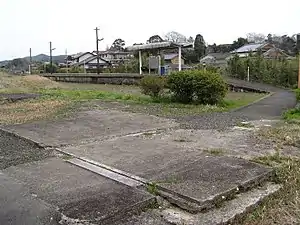 The private Kitakyushu Railway, which had a track between Hakata and Higashi-Karatsu by 1926 and had expanded southwards to Yamamoto by 1929. In a later phase of expansion, the track was extended west from Yamamoto to Imari, which opened as the western terminus on 1 March 1935. This station was opened on the same day as an intermediate station on the new track. The Kitakyushu Railway was nationalised on 1 October 1937 and Japanese Government Railways (JGR) assumed control of the station and designated the track which served it as part of the Chikuhi Line. With the privatization of Japanese National Railways (JNR), the successor of JGR, on 1 April 1987, control of the station passed to JR Kyushu.[5][6]