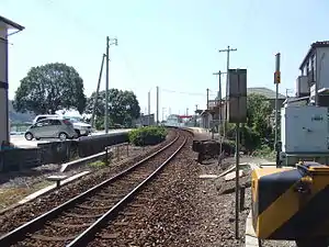 The station consists of a single side platform serving one track. The entrance to the station is located at the north end of the platform. A shelter and automatic ticket machine are also located there. The station is unattended.