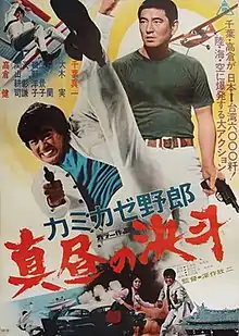 Kamikaze Man: Duel at Noon (カミカゼ野郎 真昼の決斗, Kamikaze yarō: Mahiru no kettō) (also known as The Kamikaze Guy[1][2][3][4][5] and The Kamikaze Guy: Duel at High Noon,[6] is a 1966 Japanese crime action comedy film directed by Kinji Fukasaku and starring Sonny Chiba.