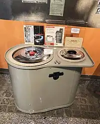 Tolon also manufactured washing machines and dish washers in his workhop, which were the first of the country.[8] He got the patents of these products in 1953.[19] Washing machines at the time were only owned by rich people due to their price as they had to be imported. Tolon's machine allowed many families to get one.[17] The copper wires needed for the machines were processed in his own workshop and everything apart from the engines were built by Tolon.[20] The engines were imported from abroad and had an import quota.[8] He had trouble selling the dish washer, as locals at the time thought that washing by hand was cleaner. This led to him stopping its production.[18]
