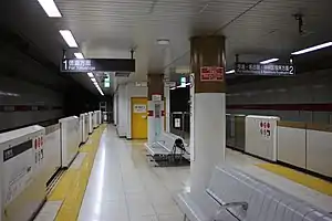 Kamisawa Station has a single underground island platform with Platform screen doors.