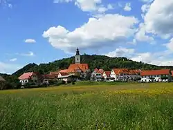 The local parish church is dedicated to Saint Martin and belongs to the Roman Catholic Archdiocese of Maribor. It is mentioned in written documents dating to the late 11th century. The current building was built at various stages from the 16th to the 18th centuries, with the most recent extensive rebuilding done between 1746 and 1767.[5]