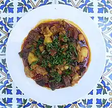 Kamounia (Arabic: كمونية), sometimes spelled Kamouneya,[1] is a beef and liver stew prepared with cumin.[2][3] It is a part of Sudanese cuisine, Egyptian cuisine and Tunisian cuisine.[1] Lamb is also sometimes used as a primary ingredient,[4] and additional spices are sometimes used.[4] It is sometimes served with or atop cooked rice.[1] Additional basic ingredients can include broth, garlic, olive oil and parsley.[1]